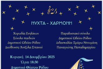 Νύχτα Χαρμονή! Η Χορωδία Ενηλίκων, το Φωνητικό Σύνολο Παιδιών και το Παραδοσιακό σύνολο του Δημοτικού Ωδείου Ρόδου παρουσιάζουν μια…