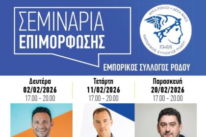 Ο Εμπορικός Σύλλογός Ρόδου διοργανώνει τον μήνα Φεβρουάριο, τρία δωρεάν επιμορφωτικά σεμινάρια. 1. Την Δευτέρα 02/02/2026 και ώρα 17:00 σεμινάριο…