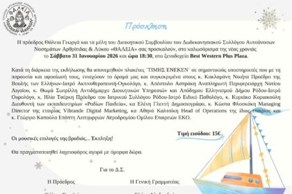 Σε ιδιαίτερα θερμό και εορταστικό κλίμα πραγματοποιήθηκε την Παρασκευή 23 Ιανουαρίου 2026 στο ξενοδοχείο Mediterranean η πανηγυρική συνεστίαση του Ροταριανού…
