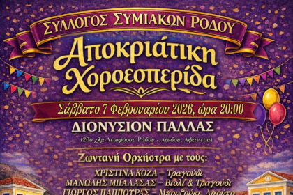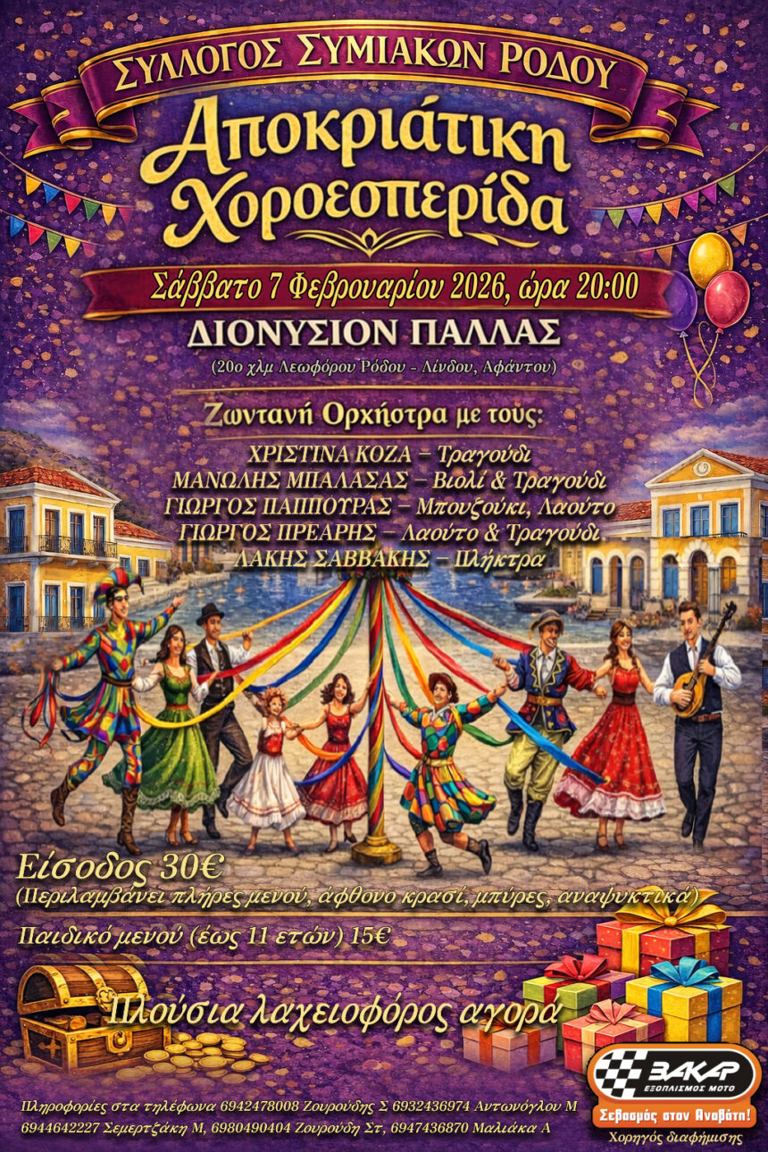 Ο ΣΥΛΛΟΓΟΣ ΣΥΜΙΑΚΩΝ ΡΟΔΟΥ Ο ΓΛΑΥΚΟΣ σας προσκαλεί σε ένα αποκριάτικο ξεφάντωμα στην χοροεσπερίδα που διοργανώνει το Σάββατο 7 Φεβρουαριου…