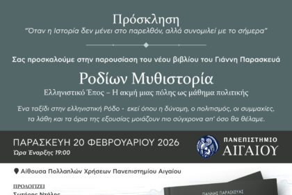 Παρουσίαση του βιβλίου του Γιάννη Παρασκευά « «Ροδίων Μυθιστορία» Το βιβλίο του Γιάννη Παρασκευά με τίτλο «Ροδίων Μυθιστορία» θα παρουσιαστεί…