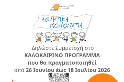 Αθλητικά Μονοπάτια Η.Ν. Κάσος καλοκαίρι 2026. Είμαστε στην ευχάριστη θέση να σας ενημερώσουμε ότι το πρόγραμμα «ΑΘΛΗΤΙΚΑ ΜΟΝΟΠΑΤΙΑ» θα πραγματοποιηθεί…