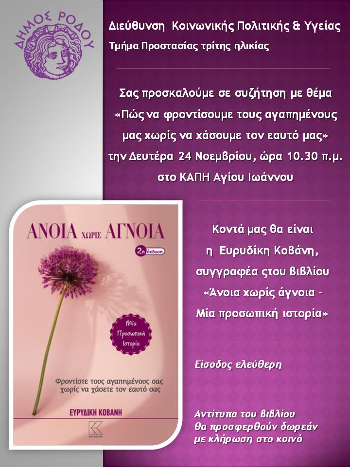 Το ΚΑΠΗ Δήμου Ρόδου διοργανώνει τη Δευτέρα 24 Νοεμβρίου, στις 10:30π.μ.