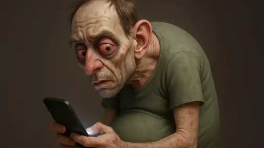 Η συνεχής αναζήτηση στα μέσα κοινωνικής δικτύωσης για τα τελευταία αντιγηραντικά προϊόντα μπορεί, παραδόξως, να επιταχύνει τη διαδικασία, όπως υποδηλώνει η καταβεβλημένη εμφάνιση του «Σαμ».