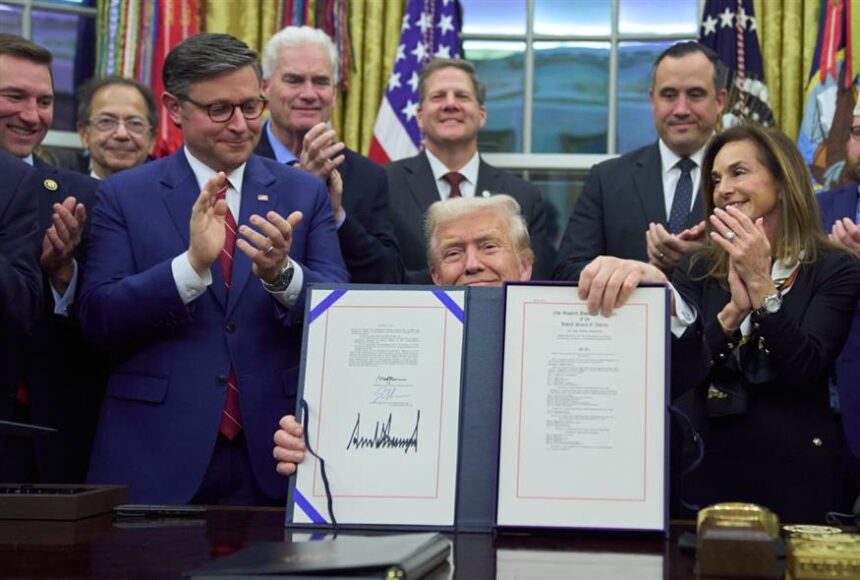 «Σήμερα στέλνουμε το σαφές μήνυμα ότι δεν υποχωρούμε ποτέ σε εκβιασμούς», πέταξε δηκτικά απευθυνόμενος στους δημοκρατικούς αντιπάλους του, προτού υπογράψει το κείμενο, επευφημούμενος από ρεπουμπλικάνους κοινοβουλευτικούς που τον πλαισίωναν στο Οβάλ Γραφείο.