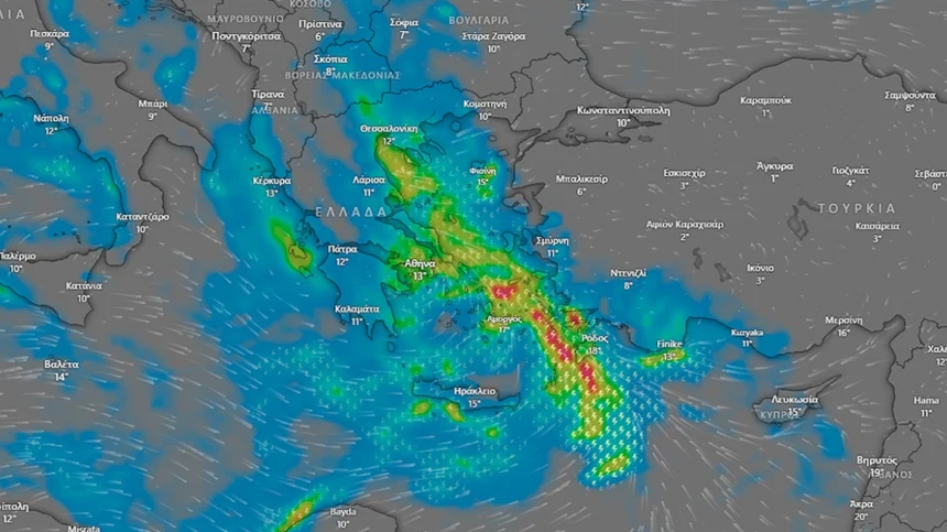 Σύμφωνα με τον πρώην διευθυντή της ΕΜΥ, Θοδωρή Κολυδά, «συνεχίζονται οι βροχές στα ανατολικά, με μειούμενες εντάσεις από το απόγευμα σε πολλές περιοχές, ενώ η ζώνη των περισσότερων καταιγίδων έχει μετατοπιστεί κυρίως προς ανατολικό Αιγαίο Δωδεκάνησα. Οι νοτιοανατολικοί άνεμοι δεν ξεπερνούν τα 7-8 μποφόρ».