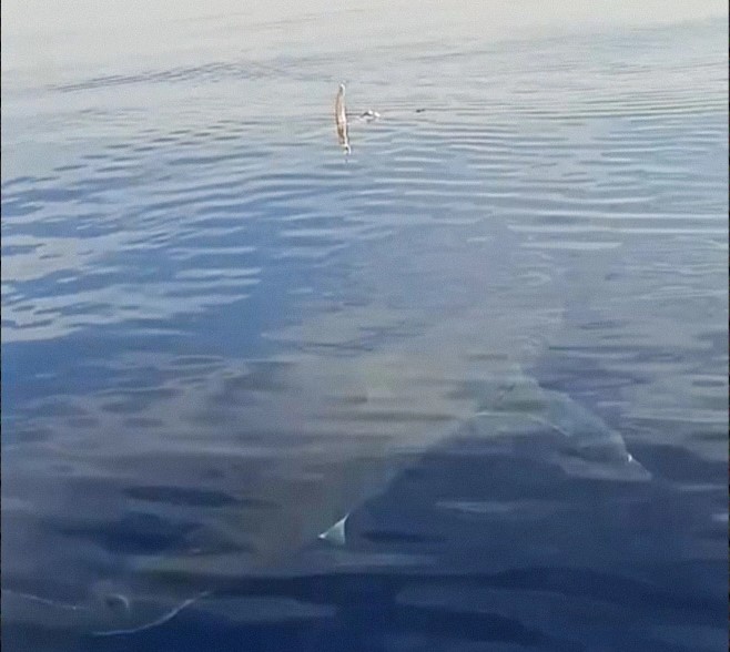 Όπως φαίνεται σε βίντεο, το οποίο δημοσίευσε ένας από τους ψαράδες στον λογαριασμό του στο Tik Tok, οι ψαράδες παρατήρησαν το τεράστιο ψάρι από το σκάφος τους, όσο αυτό είχε αρπάξει έναν τόνο και τον καταβρόχθιζε.