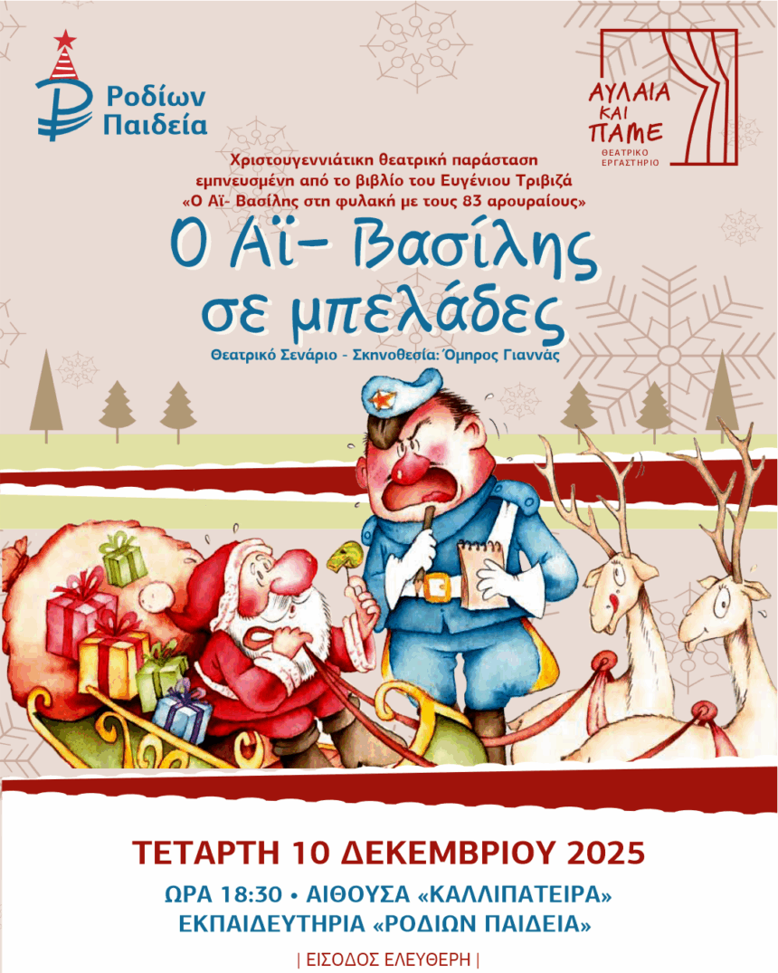«Ο Αϊ-Βασίλης σε μπελάδες»  Χριστουγεννιάτικη Παράσταση από το Θεατρικό Εργαστήριο  «ΑΥΛΑΙΑ ΚΑΙ ΠΑΜΕ»  των Εκπαιδευτηρίων «ΡΟΔΙΩΝ ΠΑΙΔΕΙΑ»
