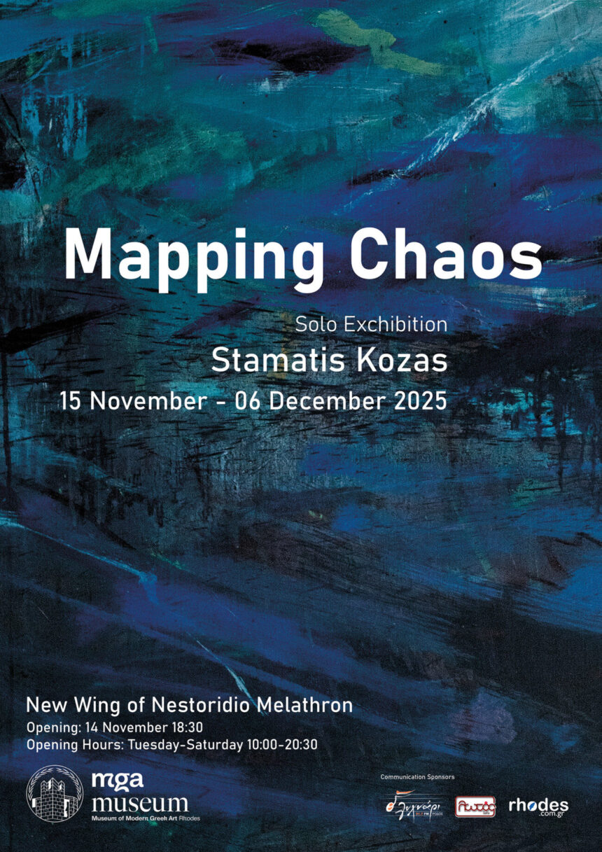 Την Παρασκευή 14 Νοεμβρίου στις 18:30 θα πραγματοποιηθούν τα εγκαίνια της πρώτης ατομικής έκθεσης του Σταμάτη Κοζά με τίτλο ‘’Mapping Chaos’’ στην Νέα Πτέρυγα του Νεστοριδείου Μελάθρου. Η έκθεση περιλαμβάνει 11 Ζωγραφικά έργα και 28 Χαρακτικά έργα που δημιουργήθηκαν την περίοδο 2021-2023.